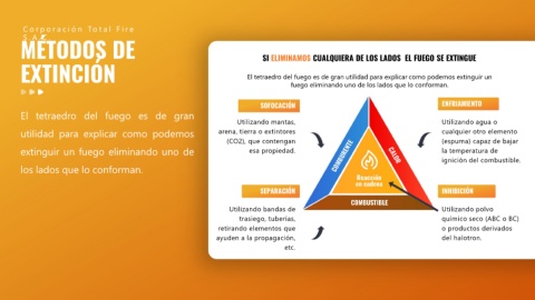 EXTINCIÓN El tetraedro del fuego es de gran utilidad para explicar como podemos extinguir un